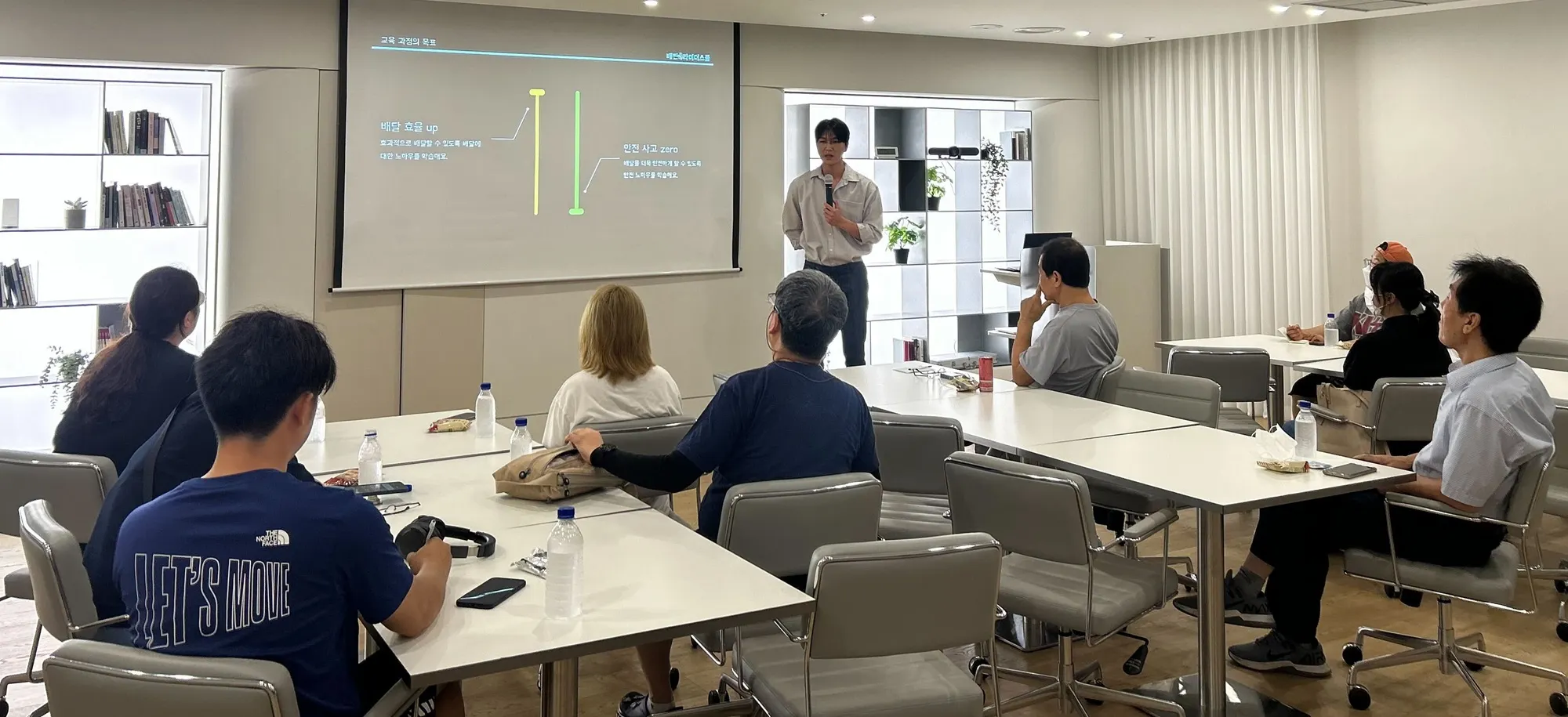 배민라이더스쿨 전문강사가 도보·자전거·킥보드 라이더를 대상으로 안전교육을 진행하고 있는 모습.