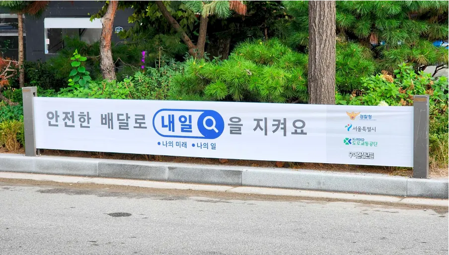 우아한청년들과 도로교통공단은 배달 주문과 활동 라이더가 가장 많은 서울을 대상 지역으로 정하고, 서울의 이륜차 사고다발지점 3곳에 순차적으로 현수막을 게시하고 있다. 안전배달 현수막이 라이더의 경각심을 높여 교통사고 위험 감소에 도움이 되는 만큼 경찰청과 서울특별시도 현수막 게시에 함께 나서고 있다.