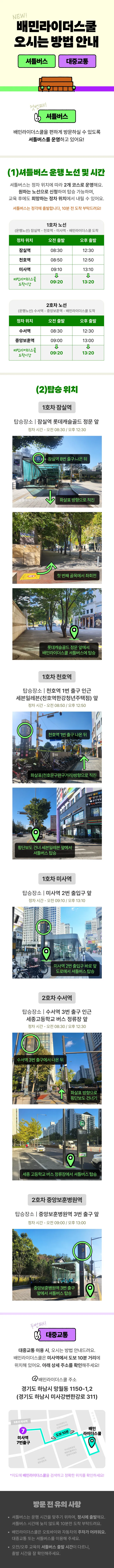 탑승 장소 및 시간: 교육 신청자에게 문자로 안내 드립니다.